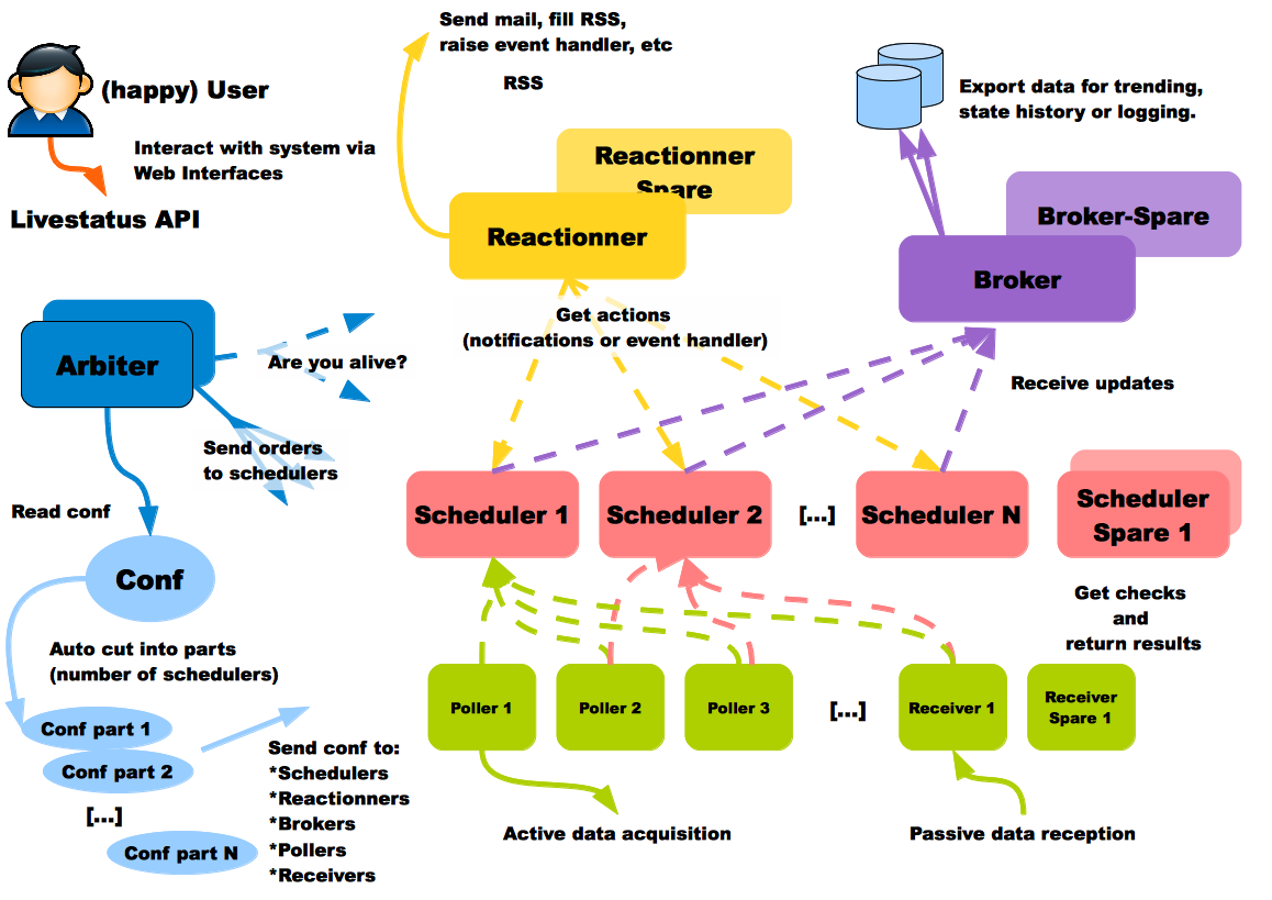 | 基于角色分离的守护程序 | Shinken中的每个后端程序只做一种事情,这些后端程序有6类 |
